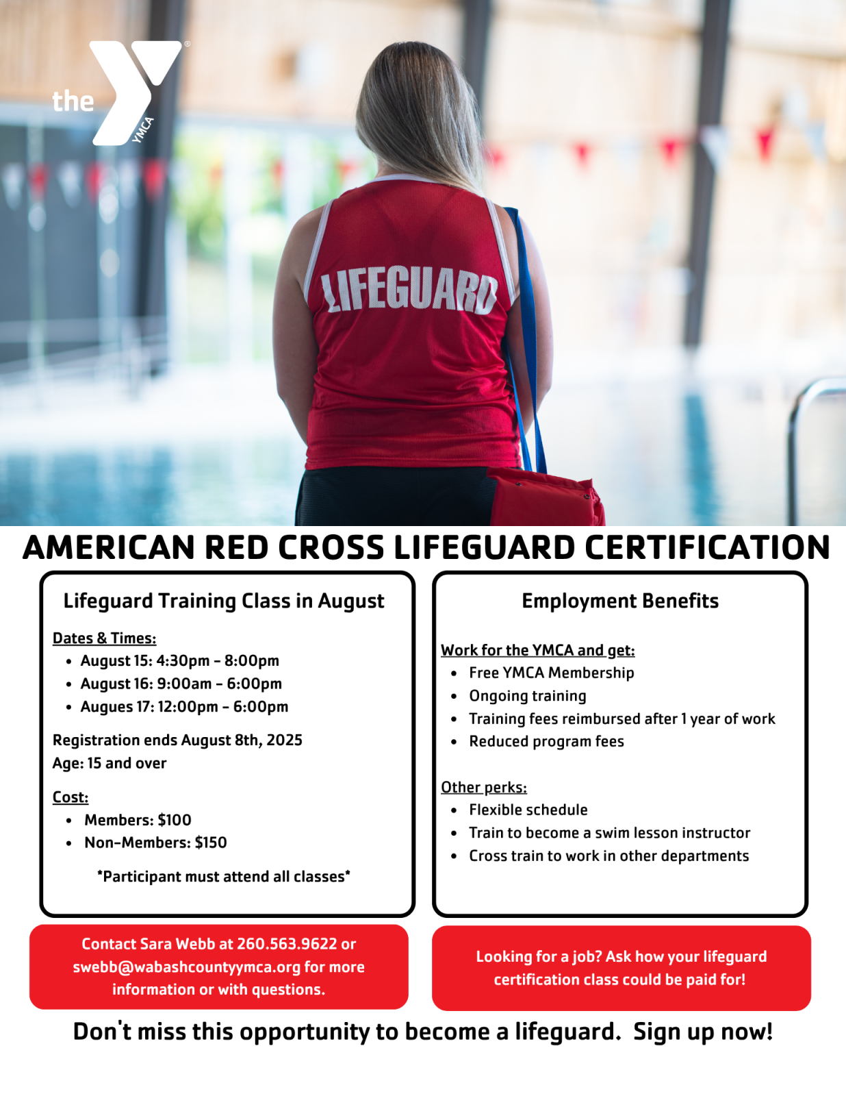 For more information, contact Sara Webb, Aquatics Coordinator | 260.563.9622 ext 406 | Email